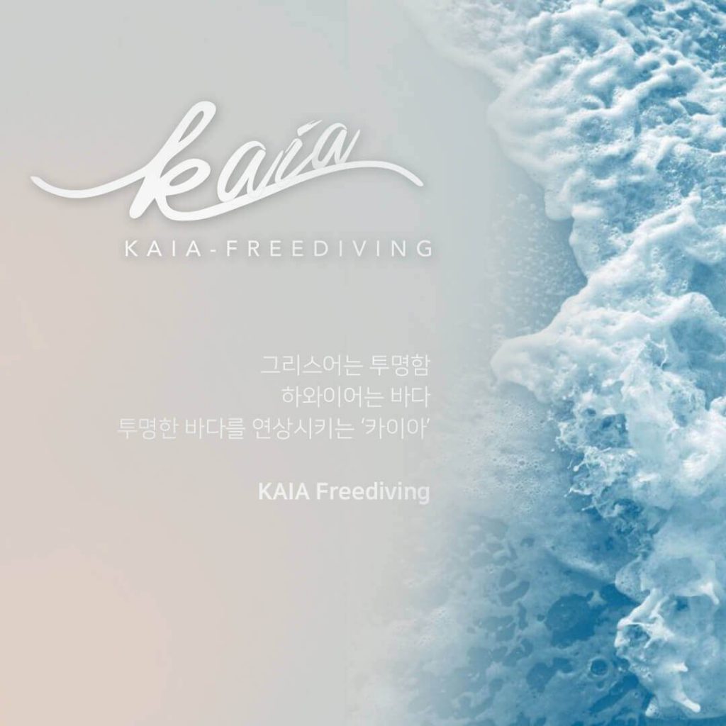 KAIA FREEDIVE 카이아 프리다이빙 카이아 프리다이브 (KAIA FREEDIVE) 투명한 바다를 연상시키는 카이아 프리다이빙 센터 로고입니다. 그리스어로 투명함 하와이어로 바다 KAIA Freediving Center means the transparent sea, like clear crystal which means Transparency in Greek, Clear sea in Hawaiian.
